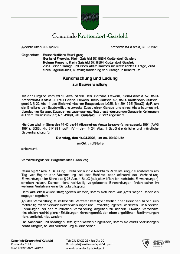 Grundstücksummer: 496/3, KG Gaisfeld, EZ 297, Klein-Gaisfeld 57